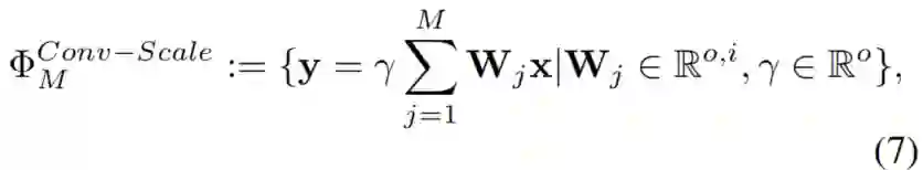 其中 是滑动窗口内的向量化像素, ,W是对应于特定输出通道的卷积核, 是比例因子。假设所有参数都通过随机梯度下降更新,映射 更新为: