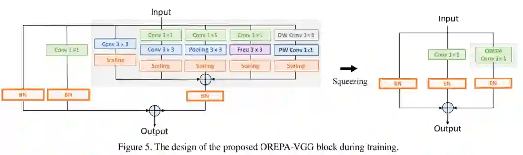 OREPA的整体pipeline如图2所示,它包括一个Block Linearization阶段和一个Block Squeezing阶段。