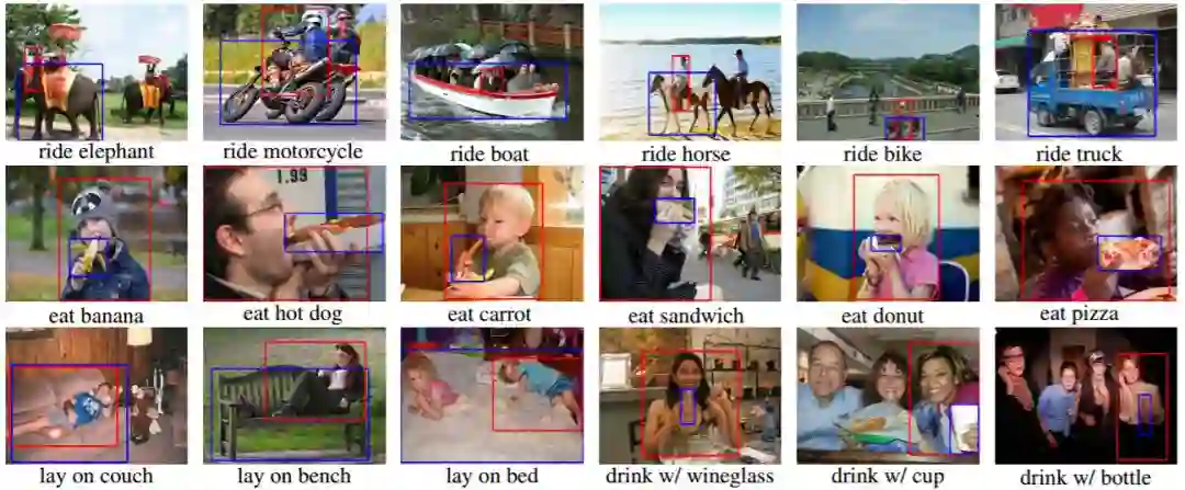 在过去几年里,视觉识别任务飞速发展,包括物体检测 [8,10,27,34]、分割 [5,11,18,28] 和动作识别 [6,9,13,30,41]。但是,理解场景不仅需要检测单个物体实例,还需要识别物体对之间的视觉关系。视觉关系检测中尤为重要的一环是检测并识别每个人如何与周围物体交互。