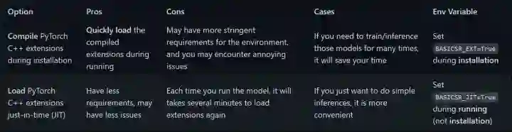如果你不需要使用 PyTorch C++ extensions,就跳过这一步,也不需要设置BASICSR_EXT或BASICSR_JIT环境变量。