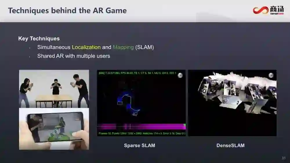 与当前大多数AR游戏不同,商汤发力的是移动端上的多人AR游戏,这也带来了新的挑战——怎么让多个用户都能参与进来。汤教授表示,想要实现这一点并不容易。不仅要在充满挑战性的环境中保持稳定,还要考虑到大规模场景中移动设备的性能。