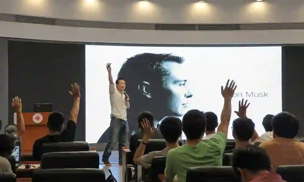 ◆ 在斯坦福大学的留学经历为周哲下海创业打下了技术基础。图为周哲在清华大学做演讲。