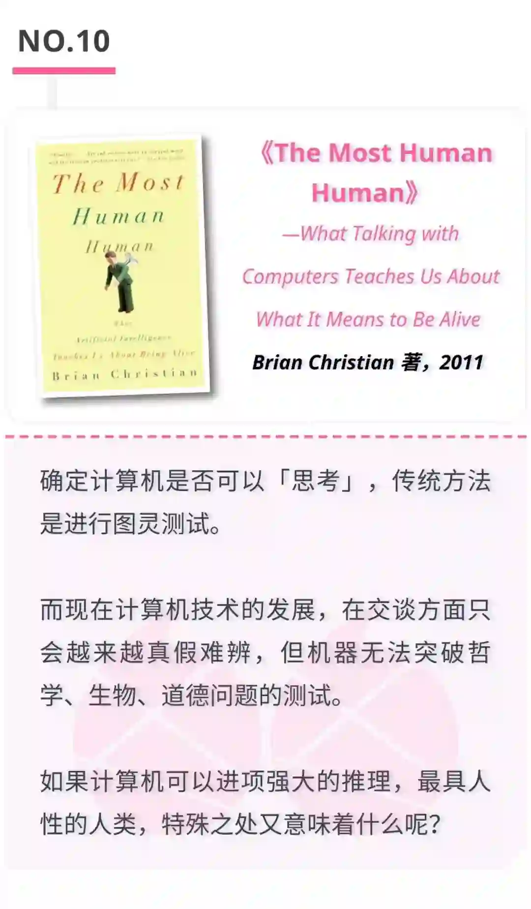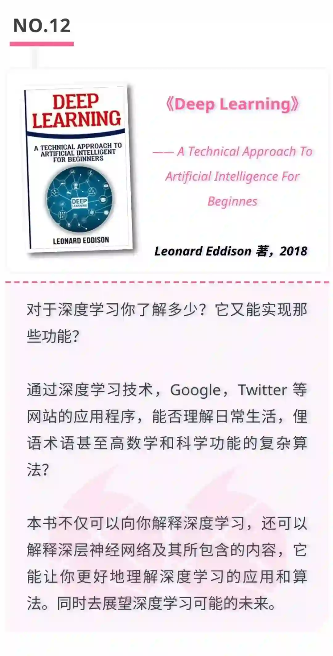 在一个专业书籍推荐网站BookAuthority上,业界里的几位大佬,诸如 Elon Musk(SpaceX 首席执行官、特斯拉联合创办人),Tony Robbins(美国知名作家、慈善家),Vinod Khosla( Khosla Ventures 的合伙人),Imani Perry(美国跨学科领域教授,专业涉及种族,法律,文学多领域)等人,列出了史上最好的 100 本 AI 书籍,涵盖了 AI 的多项研究和应用。