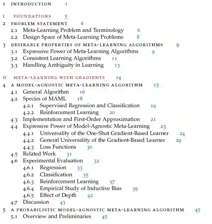 人类有一种非凡的能力,能从少数例子中学习新概念,并能迅速适应不可预知的环境。为了做到这一点,他们以先前的经验为基础,并为适应能力做好准备,允许将先前观察与少量新证据结合起来进行快速学习。然而,在大多数机器学习系统中,有不同的训练和测试阶段:训练包括使用数据更新模型,在测试时,模型被部署为一个刚性决策引擎。在本文中,我们讨论了基于梯度的learning to learn算法,或元学习(meta-learning),其目的是赋予机器类似于人类的灵活性。这些元学习技术不是部署固定的,不可适应的系统,而是明确地训练快速适应的能力,以便在测试时能够在面对新场景时快速学习。