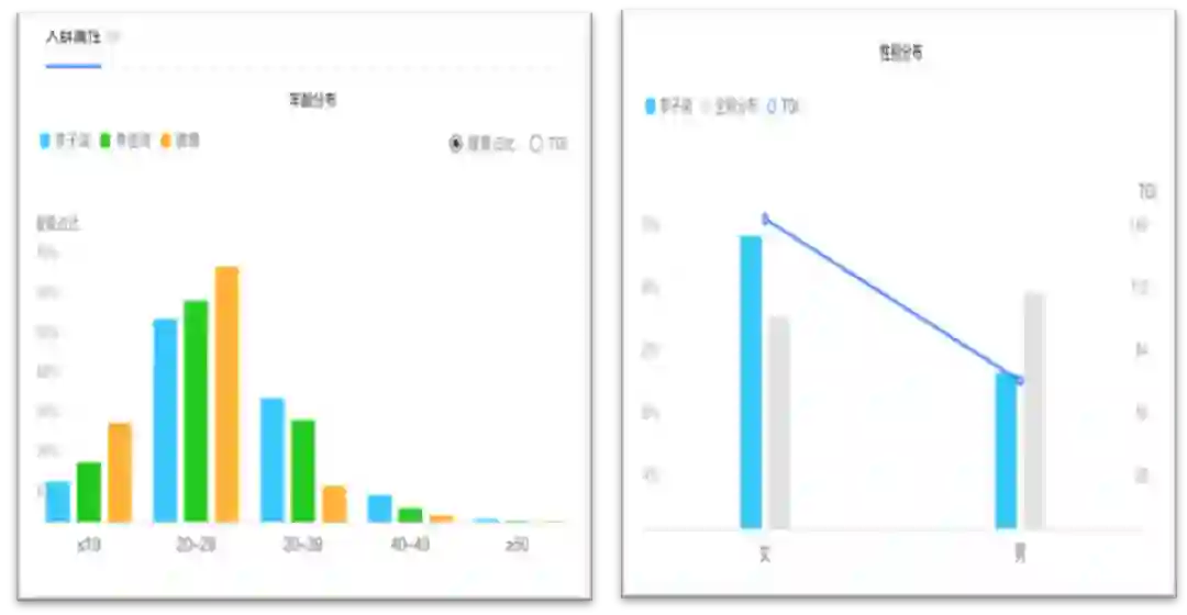 与另一位网络红人李佳琦相比,虽然二人主要年龄分布一致(与全网网民上网的年龄分布一致),但存在细微的差别。