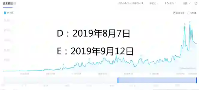 背景:从百度指数来看,D点2019年8月7日是近两年来仅次于E点2019年9月12日的高点。