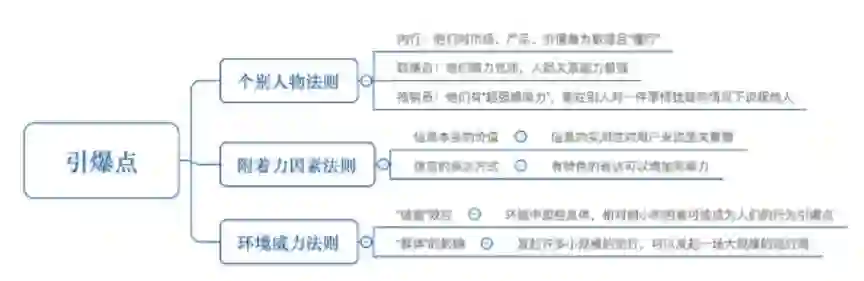 引爆点理论由美国的格拉德威尔提出,该理论包括三部分: