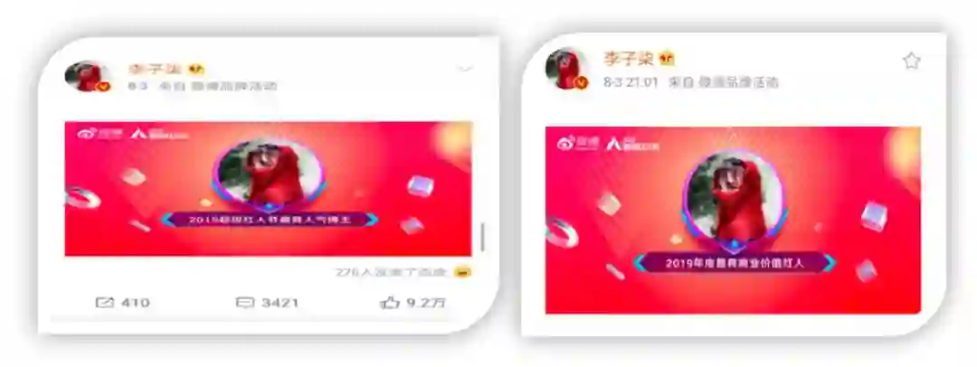 李子柒在红人节中分别获得了2019超级红人节最具人气博主,以及2019年度最具商业价值红人的头衔。