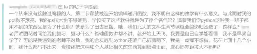 当一篇抱怨“文科生学python”的帖子被顶上未名BBS十大时,我们的思考是:问题从何而来。