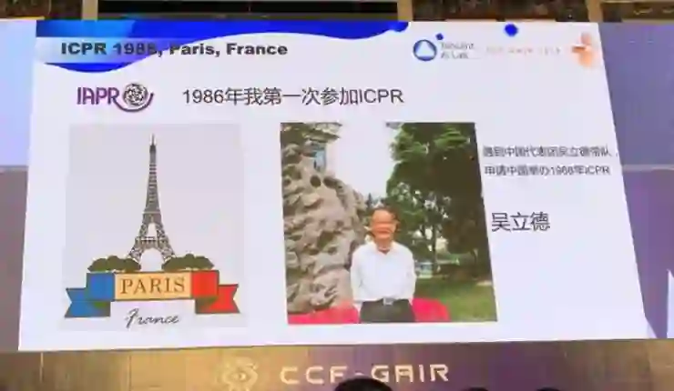 1986 年其实发生了很多事情,1986 年是我第一次参加国际会议,是在巴黎召开的 ICPR(世界模式识别大会)。在这次大会上,我碰到了复旦大学的吴立德教授,他带领了一支中国的代表团,并在会上做了一场大会报告,介绍了中国在模式识别上的研究现状,他们准备申请 1988 年的 ICPR 在中国召开。