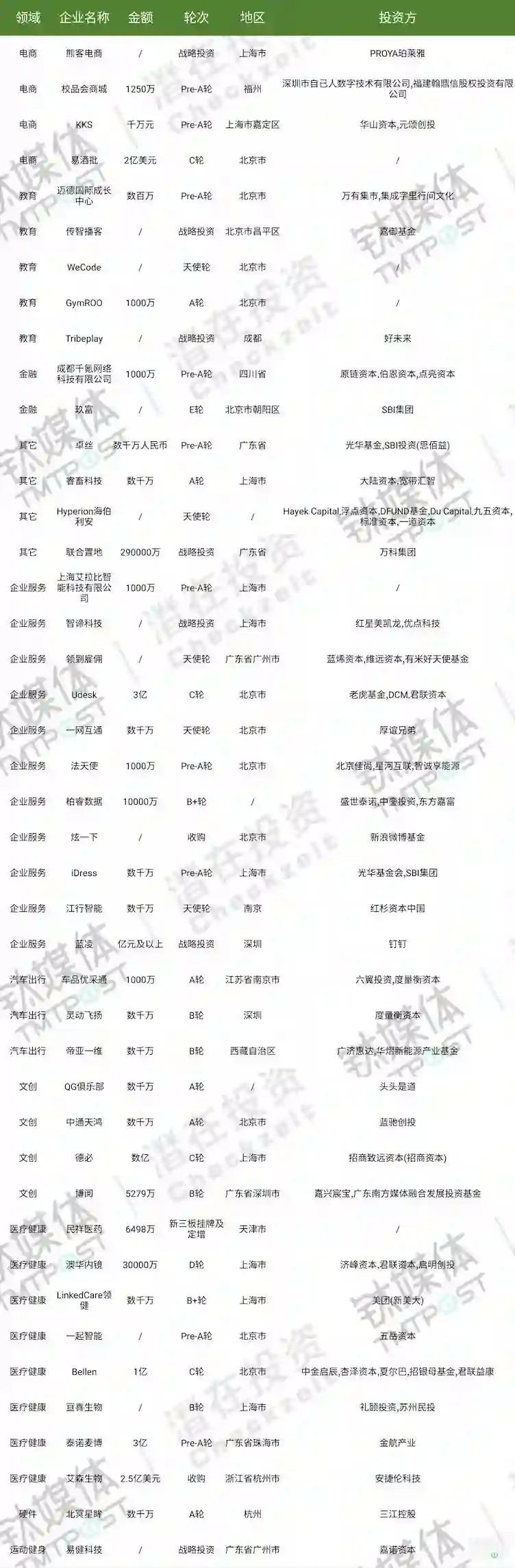 周报:第一时间汇总每周企业投融详情,综合每周投融领域概况;