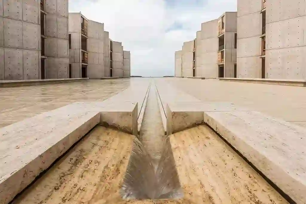 书中恰到好处地提到了 Louis Kahn 在 1963 年设计的索尔克生物研究所:壮观的混凝土外立面,随处可见的柚木元素,附带白色的石灰华大理石花园。大胆超前的外观设计最初是为了吸引明星科学家、慈善家和合作伙伴,赢得公众关注——这些它都做到了。