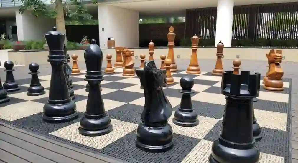美国兰德公司位于圣塔莫尼卡的建筑中庭里,有个巨型棋盘可以让人们在空闲时间来一局。