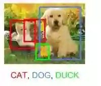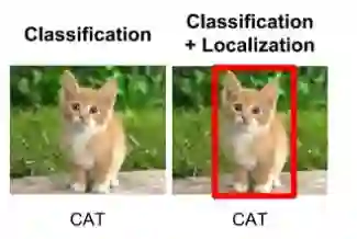 我们的模型会预测什么?为了解决这个问题,我们可以训练一个多标签分类器来预测这两个类(狗和猫)。但是,我们仍然不知道猫或狗的位置。在图像中识别目标(给定类)位置的问题称为定位。但是,如果目标类不确定,我们不仅要确定位置,还要预测每个目标的类别。