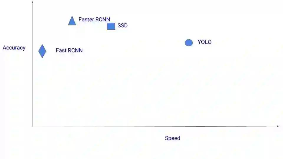 这有很多算法。你应该使用哪一个?目前,如果您对准确率很狂热,则选择Faster RCNN。 但是,如果你计算资源紧缺(可能在Nvidia Jetsons上运行),SSD是一个更好的建议。 最后,如果精度不是太高,但是想要超快速度,YOLO将会是一个很好的选择。下图是对速度与精度之间平衡的一个示意图:
