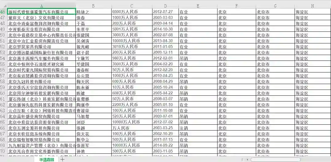 答案很残酷,折合百分比的话,华清嘉园公司的死亡率为52%,过半的企业都死了。