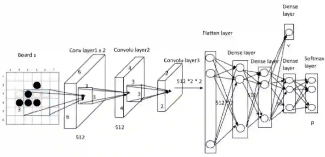 该算法利用两种神经网络:蒙特卡洛树搜索的策略-估值网络(policy-value network)(如最佳反应网络,bestresponse network)和监督学习的策略网络(如平均策略网络)。最佳反应网络如图 2 所示。神经网络的输入是边界状态。策略-估值网络有两种输出:策略 p(当前状态到动作概率的映射)和估值 v(指定状态的预测值)。估值范围为「0,1」,其中输掉比赛的对应估值 0,赢得比赛的对应估值 1。在浙大研究人员提出的网络中,relu 激活函数用于卷积层;dropout 用于全连接层以减少过拟合;softmax 用于策略概率。策略网络几乎与最佳反应网络相同,但前者仅输出策略 p 0(不会输出估值),而这也是玩家的平均策略。