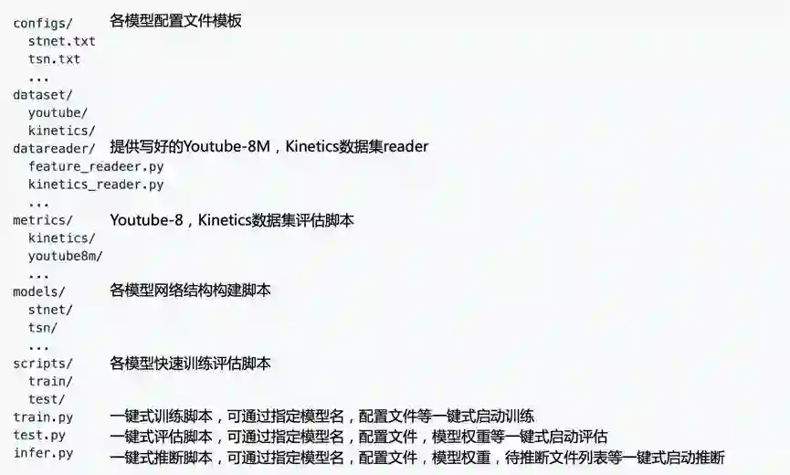 PaddleVideo 是飞桨在计算机视觉领域为用户提供的模型库 PaddleCV 中的视频识别与定位部分的模型库。PaddleVideo 的全部模型都是开源的,用户可以一键式快速配置模型完成训练和评测。
