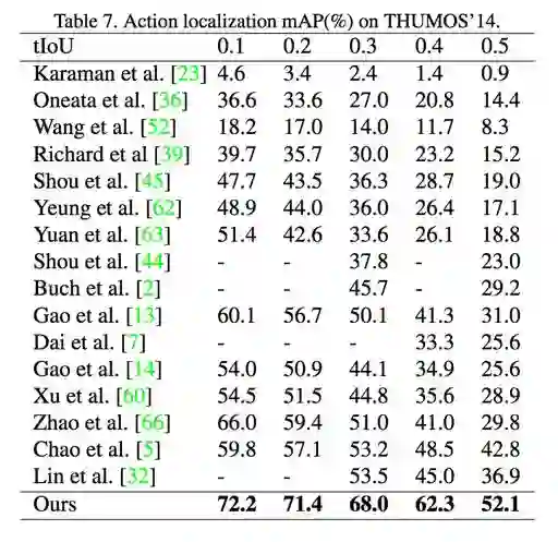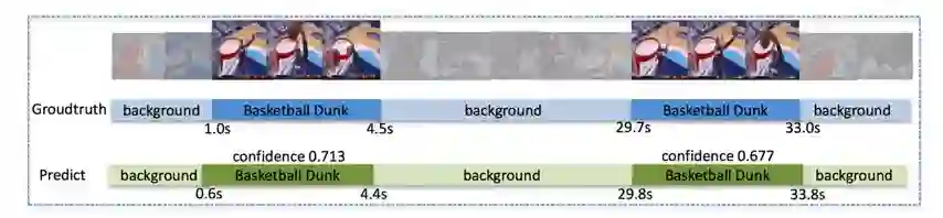 问题背景:定位视频中特定类别的时序动作片段的动作起始时间和终止时间点并正确识别动作类别。