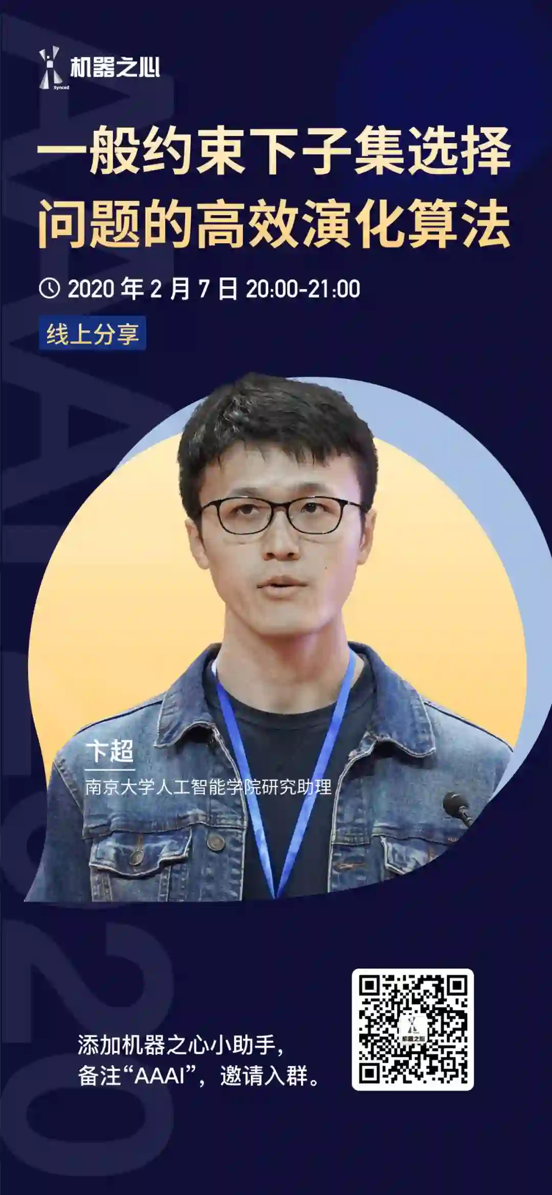 添加机器之心小助手(syncedai4),备注「AAAI」,邀请入群。
