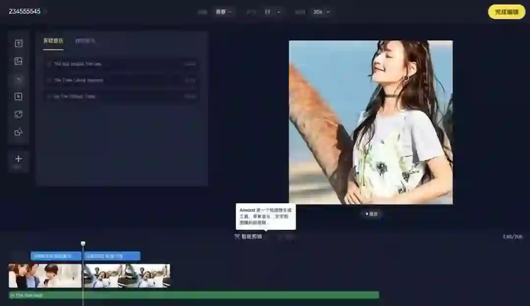 视觉素材有了,接下来就需要添加背景音乐。阿里采用了全域智能技术方案,相关技术与创意来源于浙江大学团队,曾获得中国互联网+大学生创新创业金奖。
