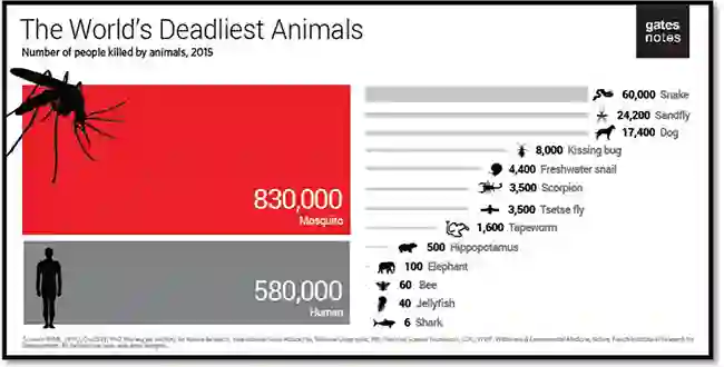 图1. 世界上最致命的动物 (盖茨基金会, 2016)。
