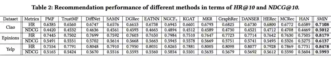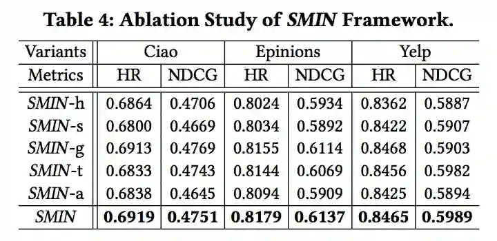 如 Table 2 所示,在三个数据集上 SMIN 均取得了明显更优的推荐效果。