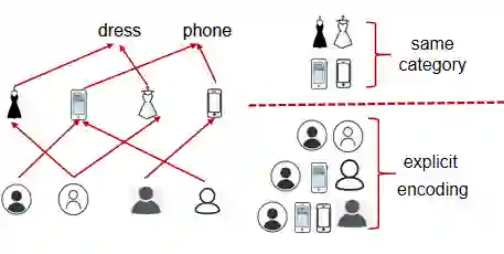 近年来,许多工作提供了神经网络技术的深入见解,并设计了更加复杂的模型来从用户社交网络和用户商品历史交互中学习用户和商品的表征信息,进而提高推荐性能。但是,现有的社交推荐模型缺少对用户和商品间高阶语义关系的显示学习,同时忽略了商品侧的一些额外信息。例如,电商平台上两个没有直接好友关系的用户,可以通过点击同一个商品或者点击同一个类别的商品关联起来,从而捕获更高阶的用户关联性信息,从而丰富用户的特征表示。