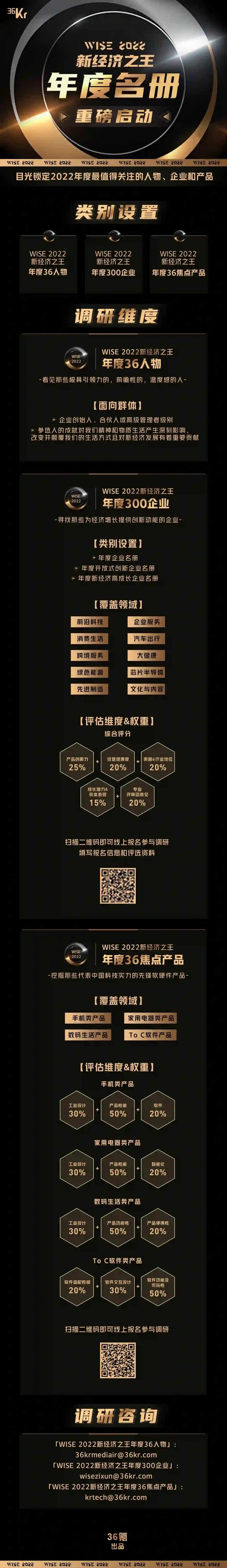 「WISE 2022新经济之王年度36人物」「WISE 2022新经济之王年度300企业」「WISE 2022新经济之王年度36焦点产品」三大名册调研正式启动!
