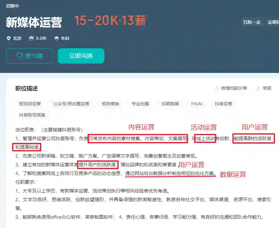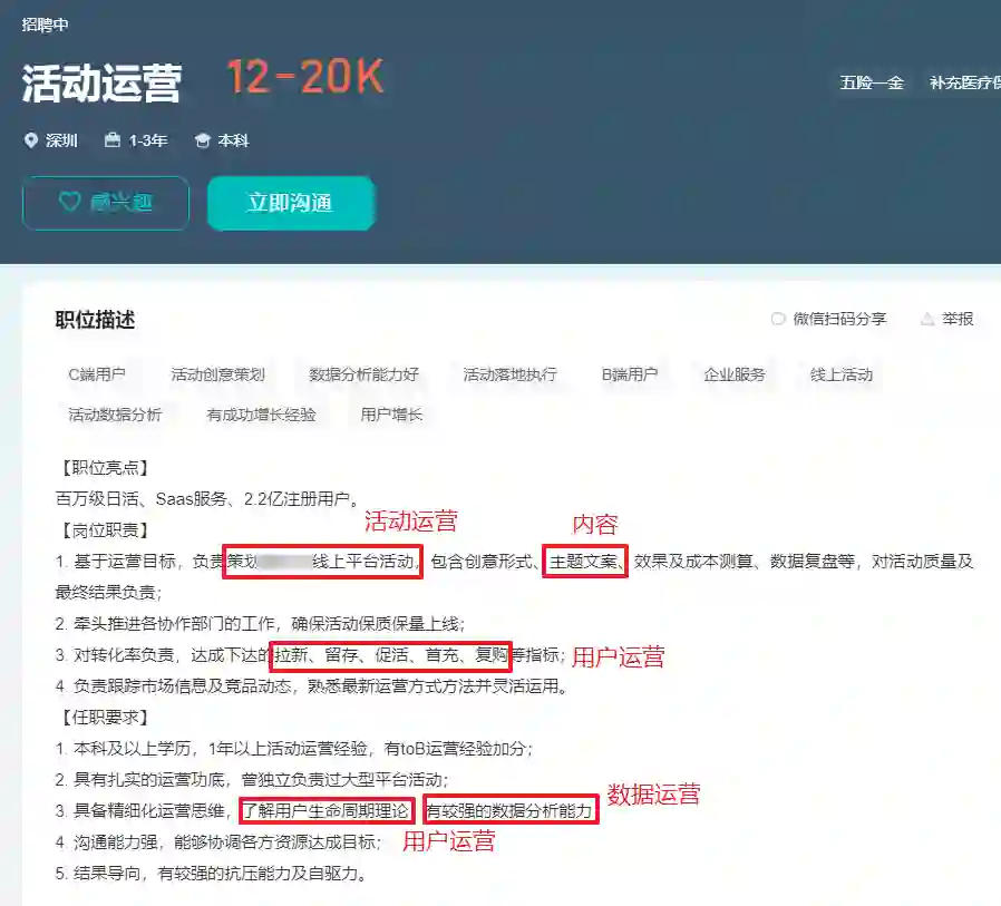 虽说运营门槛低,但不代表没有门槛。而且在当前大环境下,企业对于运营人的招聘要求普遍提高,没经验、没技能的转行人则难上加难!