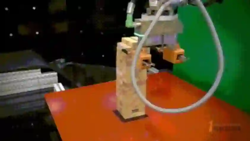 这个团队定制了一个行业标准的ABB IRB 120机械臂,在机器人能够触到的范围内搭建了一个积木塔,然后开始训练。机器人首先随机选择一块积木和推动积木的位置,然后用较小的力试图将积木推出塔外。