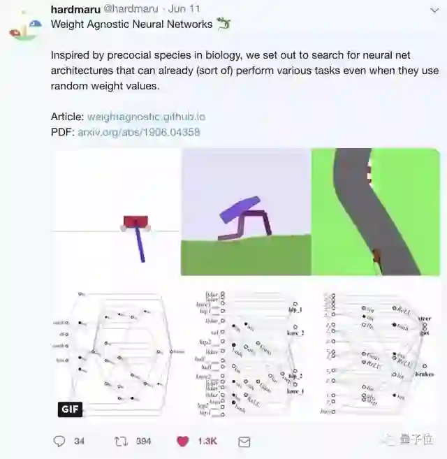 团队成员之一的大佬David Ha,把成果发上了推特,已经获得了1300多赞: