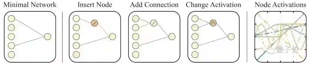 用于搜索神经网络拓扑的操作受到神经进化算法(NEAT)的启发。在NEAT中,拓扑和权重值同时优化,研究人员忽略权重,只进行拓扑搜索操作。