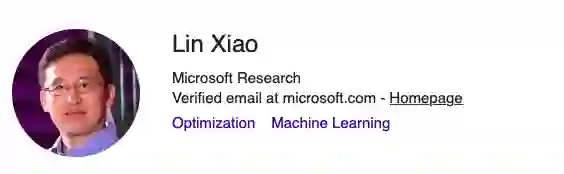 Lin Xiao 曾就读于北京航空航天大学和斯坦福大学,2006年就职于华盛顿州雷德蒙德的微软研究院,目前担任微软的高级首席研究员,研究兴趣包括用于大规模优化的理论和算法、用于机器学习的随机和在线算法以及并行和分布式计算。