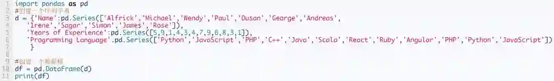 接下来,再创建一个数据框DataFrame: