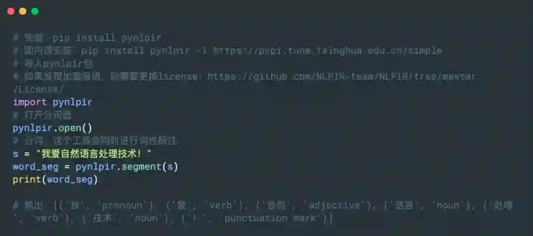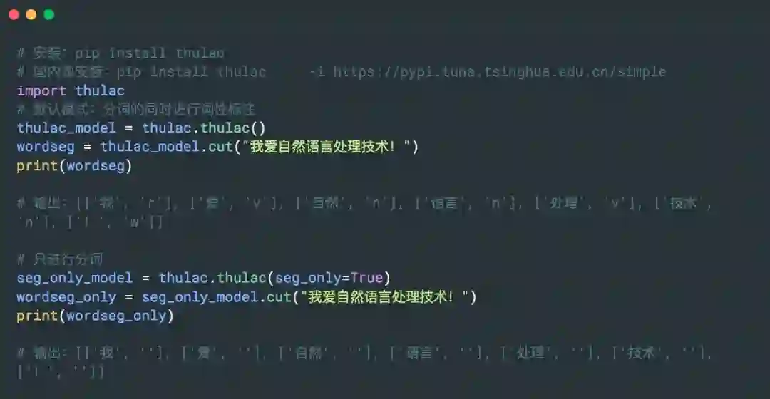 THULAC(THU Lexical Analyzer for Chinese)由清华大学自然语言处理与社会人文计算实验室研制推出的一套中文词法分析工具包,具有中文分词和词性标注功能。