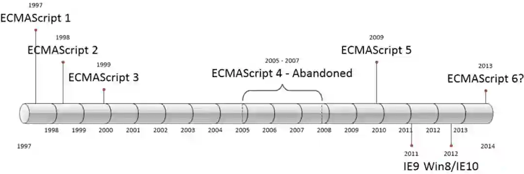 JS 的第一纪元(从 1997 至 2007) 堪称虎头蛇尾。大家都知道 Brendan Eich 的故事,但是关于 ES4 是如何与诸如 Flash/Actionscript 之类的封闭生态系统艰难地进行激烈竞争的故事却鲜为人知。我推荐大家读读《JavaScript:20 年发展史》来了解 JS 起源的前前后后,我认为这本书是一个非常合适的选择, 因为该书是由 JS 的主要作者 Brendan Eich 和 Allen Wirfs-Brock 联手发布的。