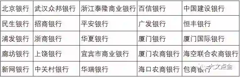 25家银行名单如下: