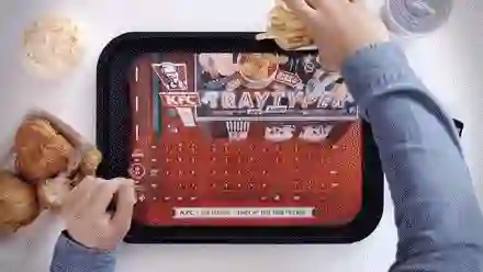 德国肯德基推出了「蓝牙键盘垫餐纸」,垫餐纸可以通过蓝牙与手机连接,这样你就能边吃炸鸡薯条边刷微博、回短信,而不会弄脏自己的手机,甚至还可以一边吃鸡,一边「吃鸡」。