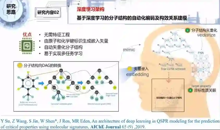 基于人工智能技术的深度学习神经网络,采用高性能计算平台进行智能识别和提取分子结构的特征,捕获微观分子结构与物质宏观性质之间的关系,运用人工智能技术建立更智能化的定量结构性质关系预测模型,有效地预测所需溶剂和化工产品的环境健康安全性质,推动绿色化工产品与可持续化工过程的不断开发。