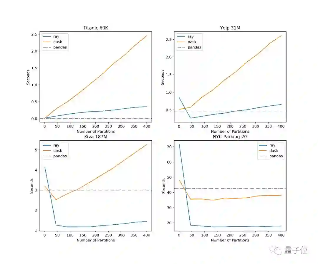 Pandas on Ray的性能虽说比不上另一个分布式DataFrame库Dask,但更容易上手,用起来和Pandas几乎没有差别。用户不需要懂分布式计算,也不用学一个新的API。