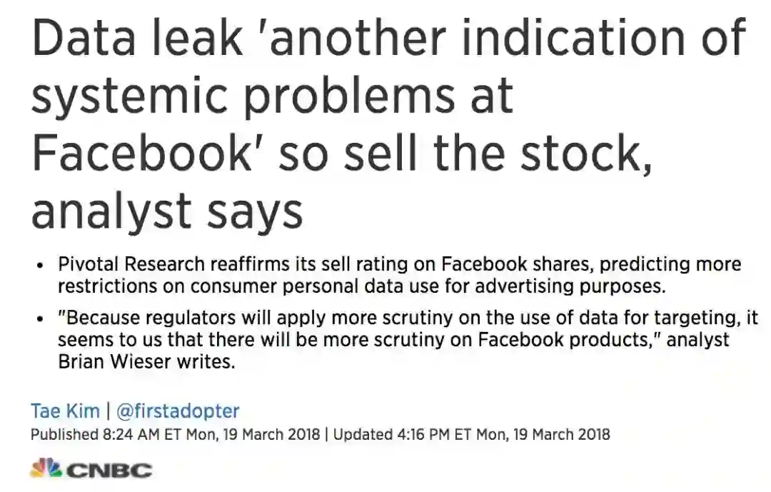此事一出,CNBC 甚至以“分析师建议大家抛 Facebook 股票” 为题,说 Facebook 出了 “系统性问题” …