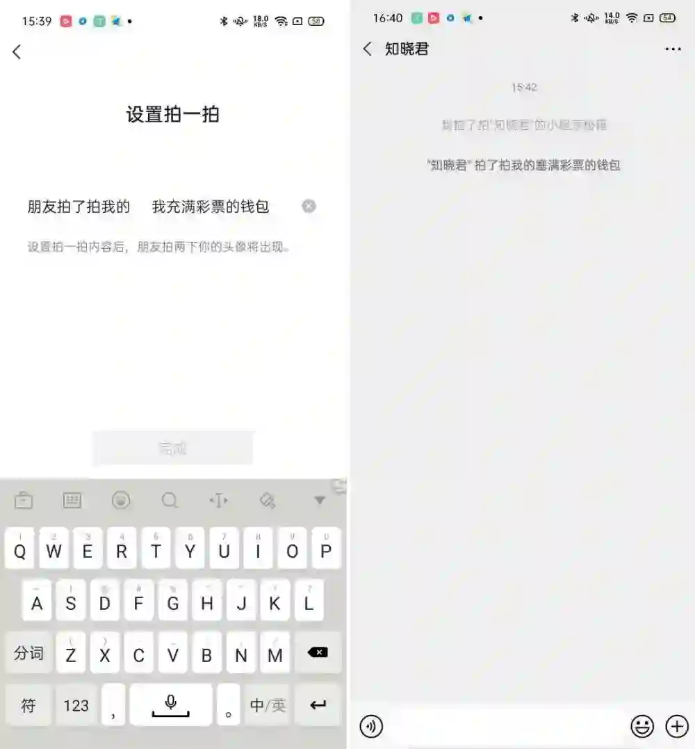 比如设置成「肩膀」,朋友在群聊中对你「拍一拍」时便将以「“XXX” 拍了拍我的肩膀」呈现,群友均可见,更增趣味。