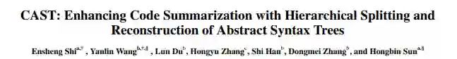 近年来,很多研究人员使用各种技术建模富含语法和结构信息的抽象语法树(AST), 以此来更好地生成代码摘要。但是,由于程序的复杂性,抽象语法树一般又大又深、难以建模。现有方法也存在着树的结构被破坏、训练代价大、信息丢失等诸多限制。为此,微软亚洲研究院的研究员们提出了一种层次化切分和重组 AST 的方法——CAST。其核心在于将 AST 层次化地切分成合适粒度的子树,使得每个子树包含相对完整的语义;独立建模子树后再按照切分前子树的相对位置,重新聚合子树的表征。这样可以使 AST 的结构更容易被建模,代码的语义能够更加完整地被构建,生成的摘要体现的语义也更加全面。