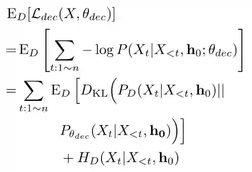然而理论分析和实验说明,由于强大的解码器自身可能学习到一定的语言范式,因此解码效果越好并不一定意味着生成的表示越好。具体来说,将解码器的重构文本的损失期望拆解为解码器预测的词分布与真实分布之间的 KL 散度,和预测词与之前已知的文本内容的条件熵之后,微软亚洲研究院的研究员们发现当解码器的拟合能力足够强大或者当前词与之前可见的文本内容依赖性足够强时,即使编码器生成的文本表示没有任何信息,解码器的解码损失也可以很小。