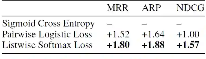 谷歌在两个关键任务场景中评估了 TF-Ranking: 对存储在谷歌驱动器中的文档进行Gmail搜索和推荐。在Gmail搜索场景中,使用TF-Ranking对匹配特定用户查询的五个结果进行排序。用户点击等指标被用作排名的相关标签。不同排序模型的结果如下矩阵所示。