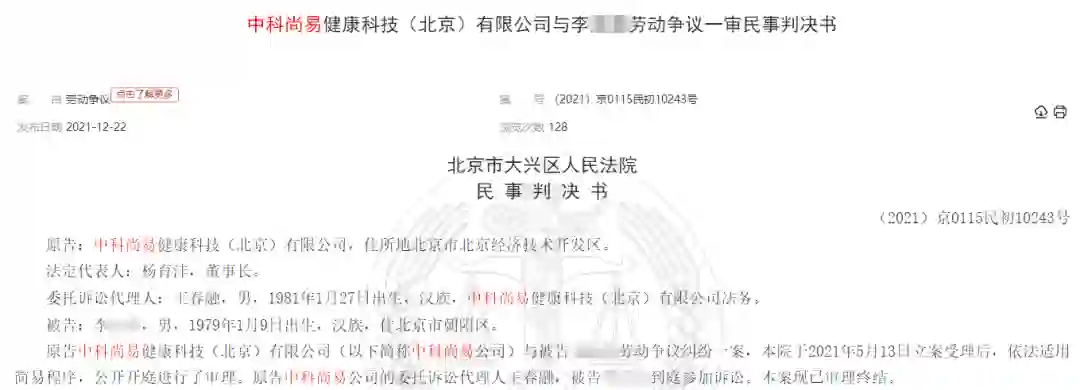 三、驳回中科尚易健康科技(北京)有限公司的全部诉讼请求。