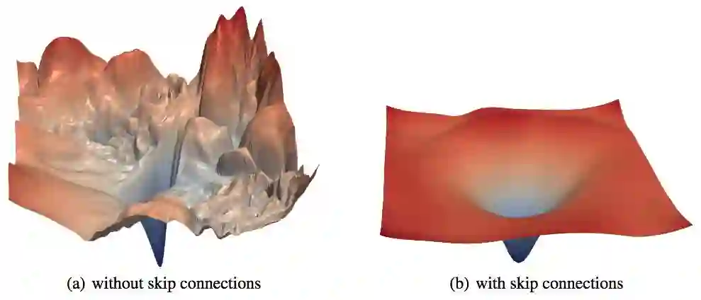 Hao Li、Zheng Xu、Gavin Taylor、Christoph Studer、Tom Goldstein等在NIPS 2018上发表了可视化神经网络损失曲面的工作,通过可视化方法揭示了神经网络架构设计(例如跳层连接)和训练参数选择的作用。