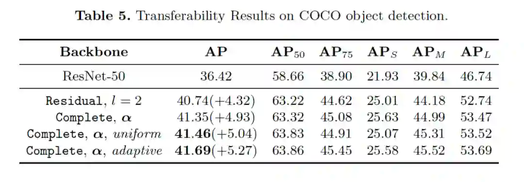 在目标检测上的实验也验证了这种方法具有良好的迁移和泛化能力,结果如表5所示。
