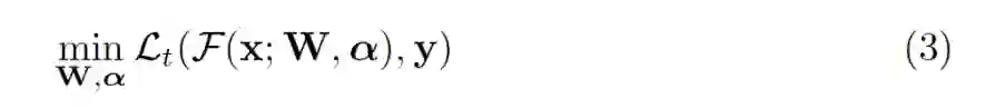 。不同于MaskConnect [1],我们没有将连接的权重进行二值化,这允许不同的特征拥有区分性的权重。不同于DARTS [2]选取概率最大的操作(operation),我们进行连续的特征融合方式,这能够保持训练和测试的一致性。优化目标可以表示为: